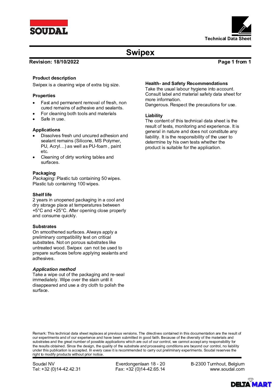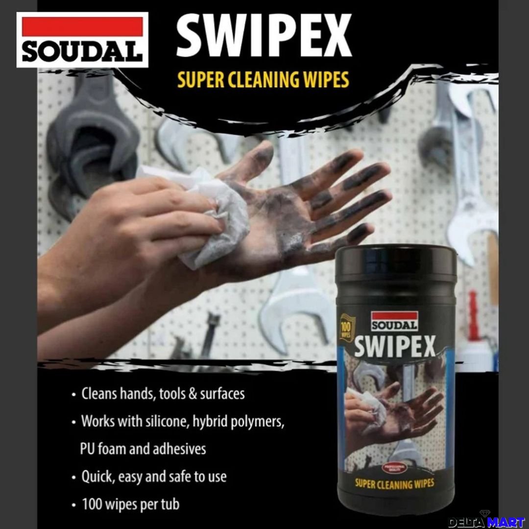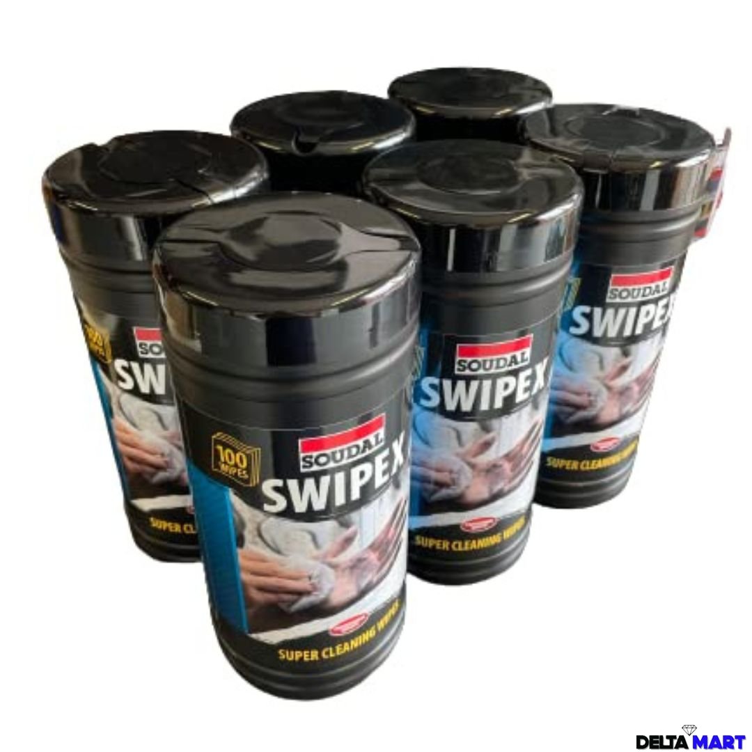 Soudal Swipex Super Cleaning Wipes (Stretch Pack) include 6 tubs of 110 ultra-effective wipes, designed for powerful cleaning in construction, industrial, and domestic environments.